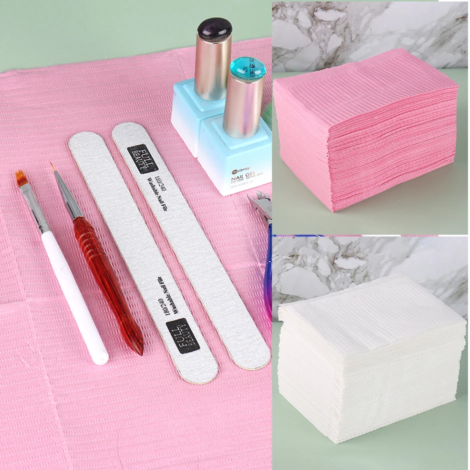 | Spécification | Couleur: rose/blanc Taille: environ 33*45cm Poids: environ 6g une pièce Le paquet comprend: 20 tapis de table à ongles |