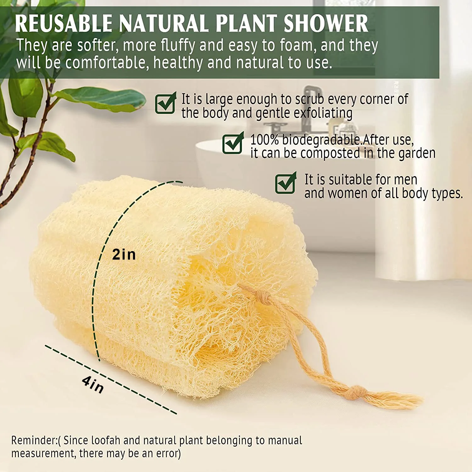 1.Carefully selected high-quality loufas, 100% biodegradable natural loofah plant fiber material, Gentle exfoliating body scrubber, can be used in bathtubs and showers, suitable for both men and women,reusable Shower Lufa Sponge. They are softer, more fluffy and easy to foam, and they will be comfortable, healthy and natural to use.