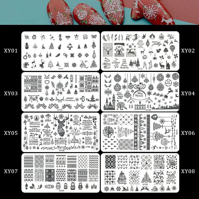 Modèles d’art d’ongle estampage plaque conception Image impression pochoir outil de manucure noël Xmas fleur surimpression timbre d’ongle