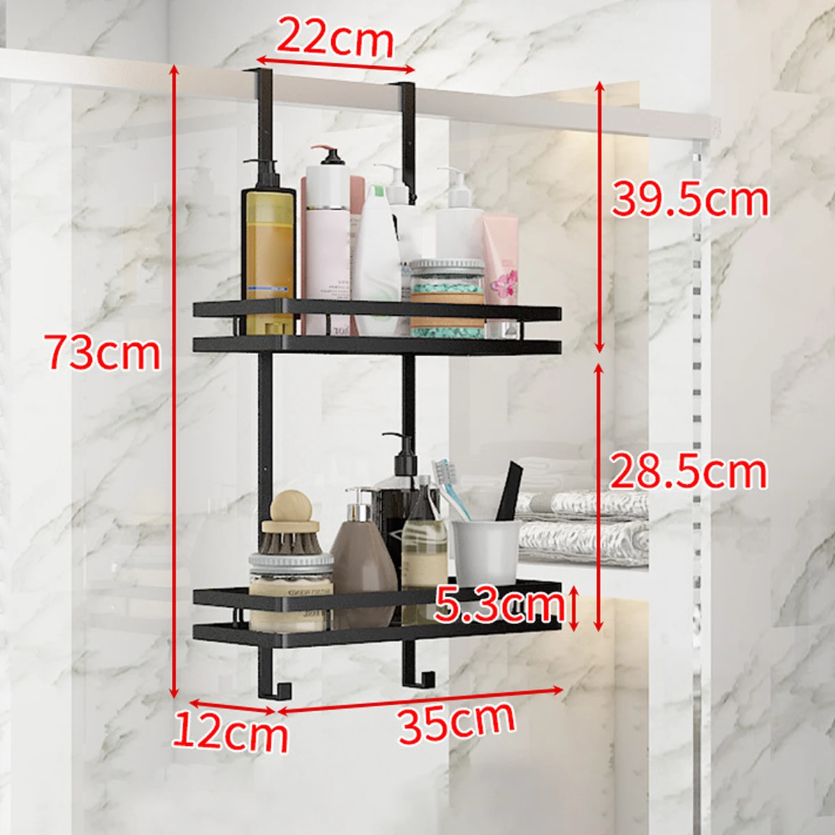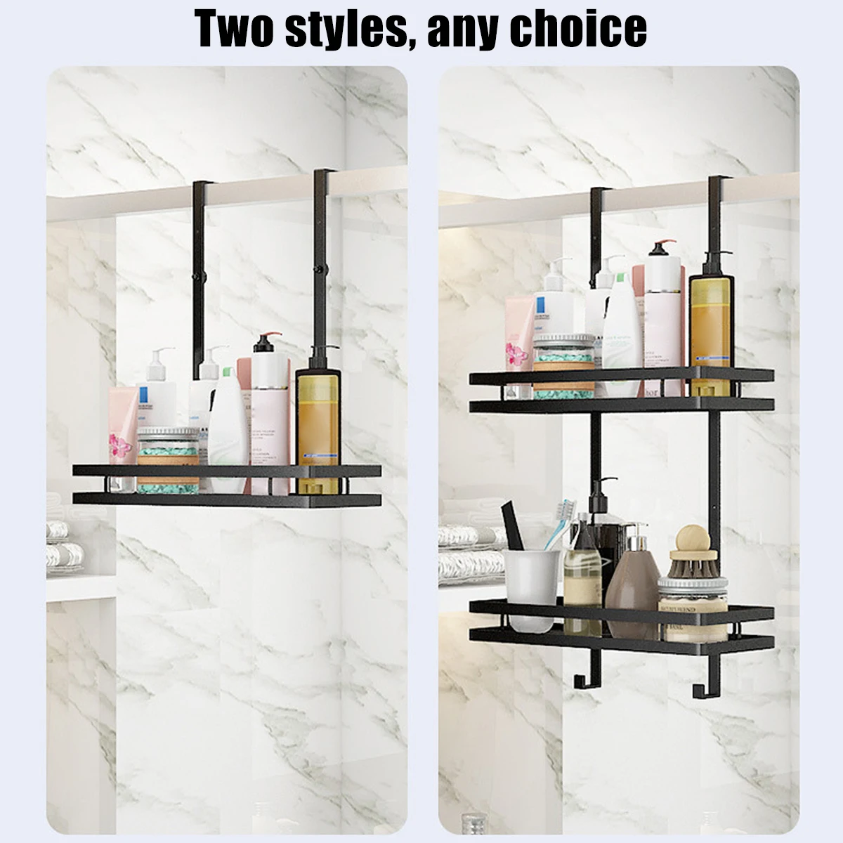 - [Capacité de poids et taille de 10kg] Ce support de douche à porte suspendue est robuste et a une grande capacité portante. Qui convient aux portes normales, porte en verre de douche avec une épaisseur ne dépassant pas 4.5cm/1,77 pouces. Il y a 2 options de supports de douche de porte suspendus sont disponibles au choix. L’un est monocouche et l’autre est double couche.