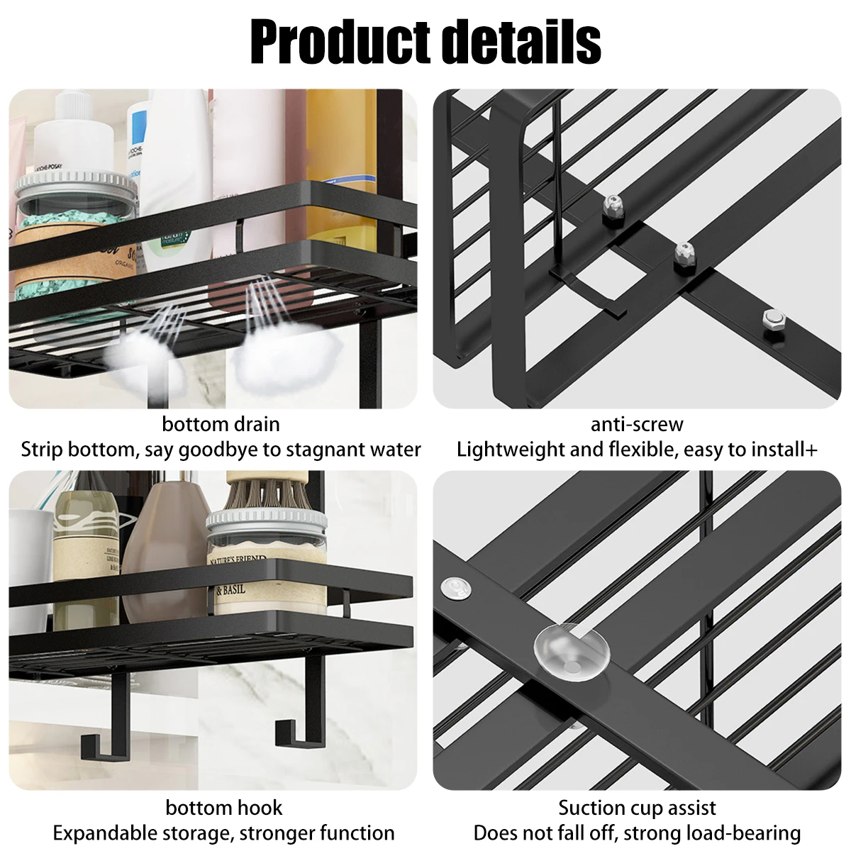 - [Facile à installer] Ce support de douche est facile à installer, pas besoin de percer ou d’autres outils d’installation. Le support de caddie de douche a une conception de ventouse. Nettoyez et séchez d’abord la surface. Accrochez le cintre sur la porte et placez les ventouses. Appuyez sur les ventouses, elles seront fermement aspirées à la surface, c’est fini.