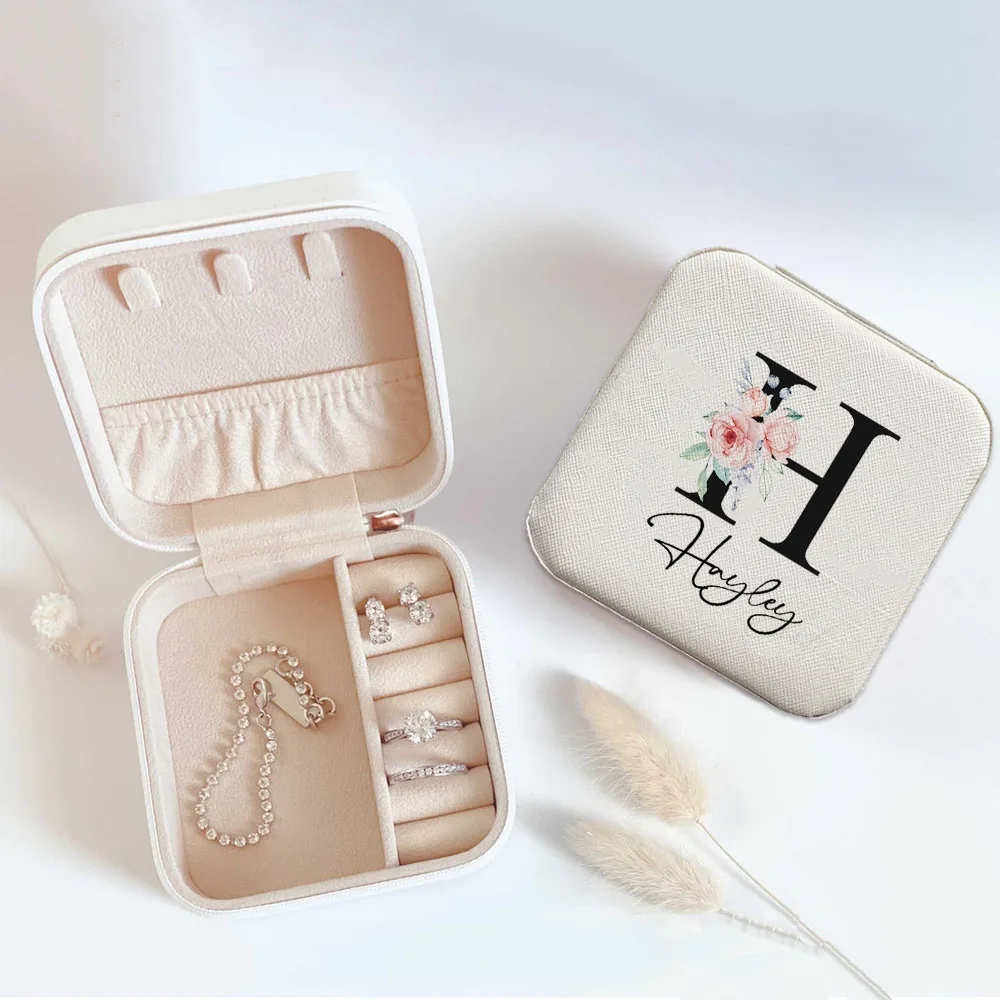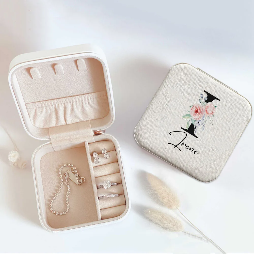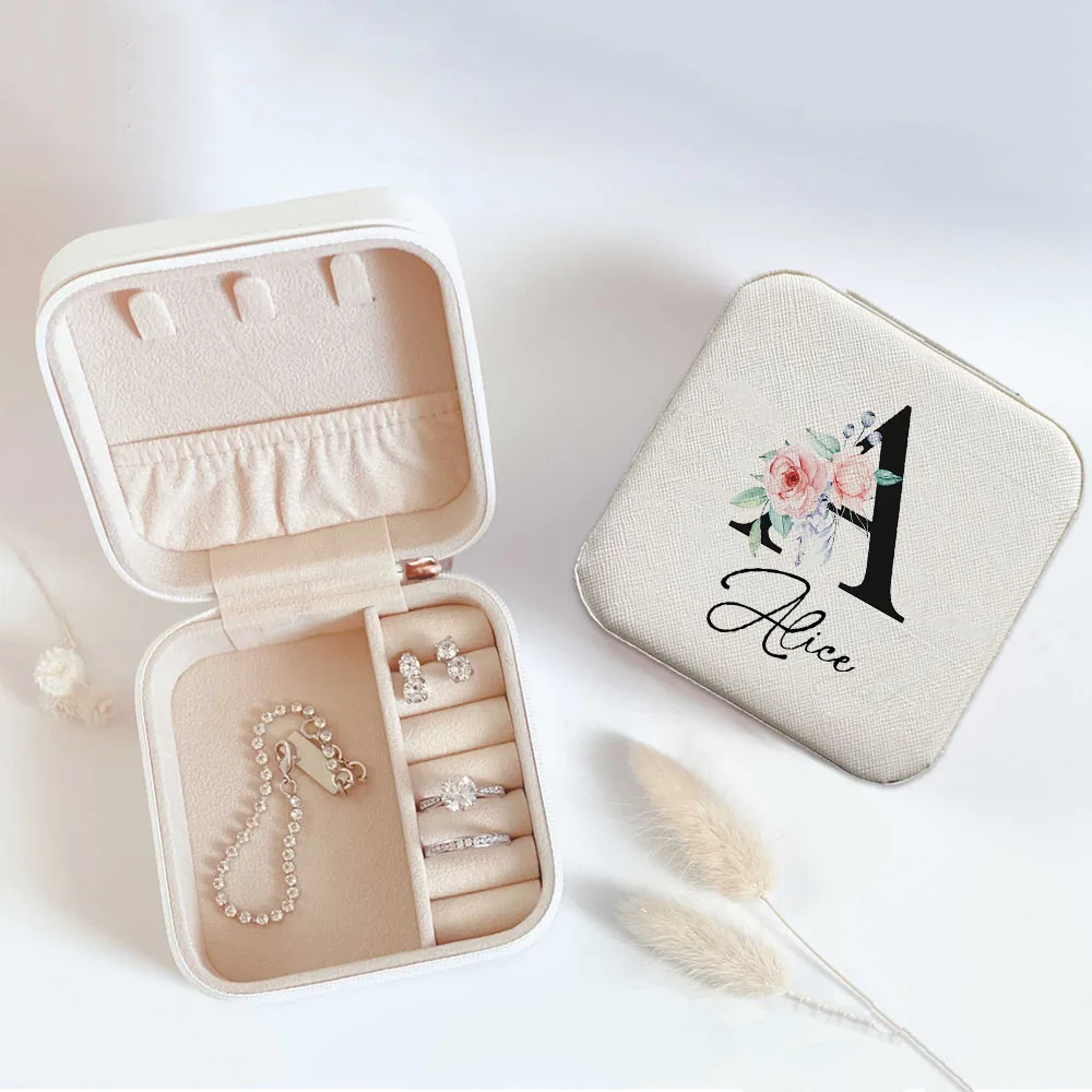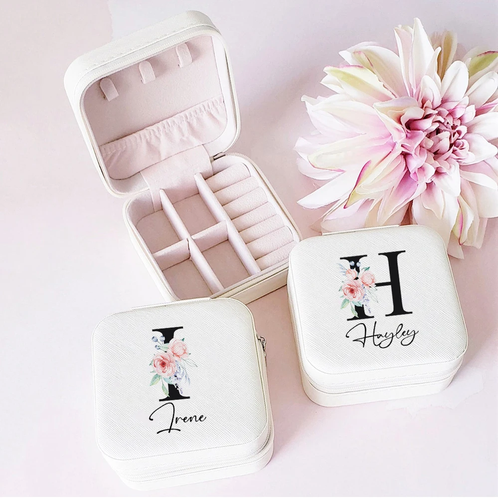 Étui à bijoux personnalisé pour demoiselle d’honneur, cadeau de Noël et de vacances, accessoires de voyage personnalisés, boîte monogramme