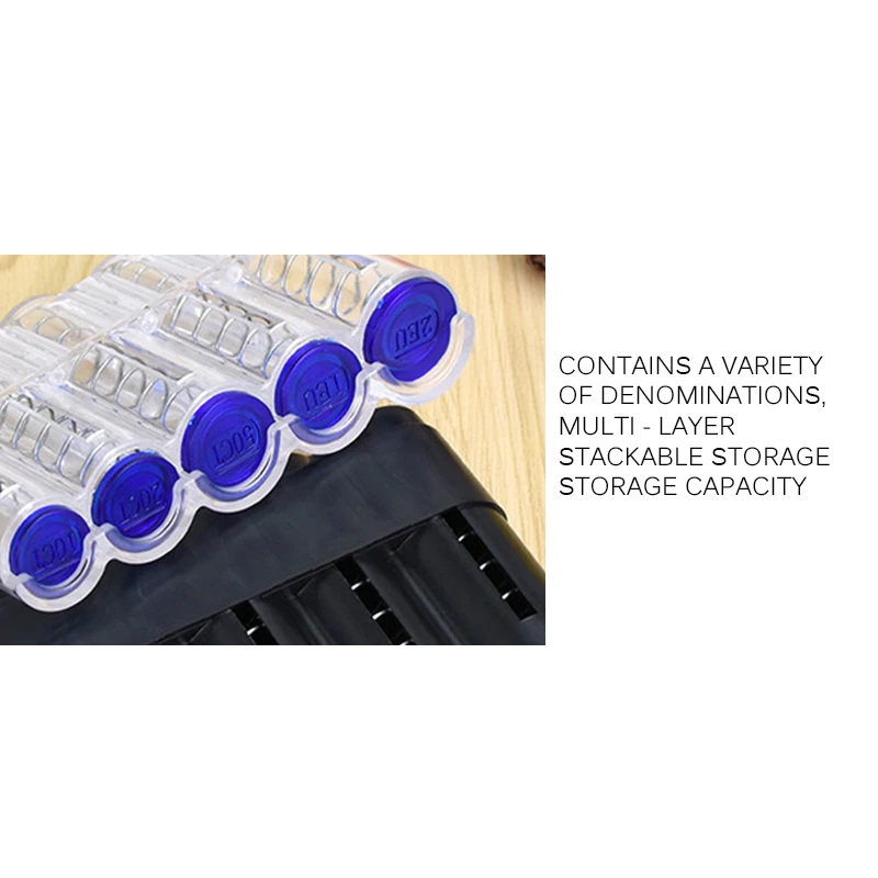 - Capacité de stockage empilable multicouche pour 5 dénominations de pièces en euros
