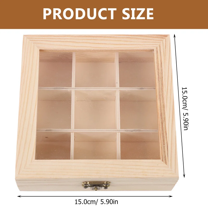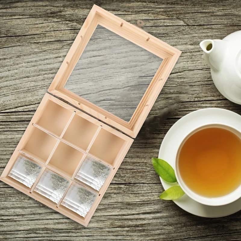La taille de la boîte à thé est de 15.00X15.00X5.00cm/5.89X5.89X1.97in.
