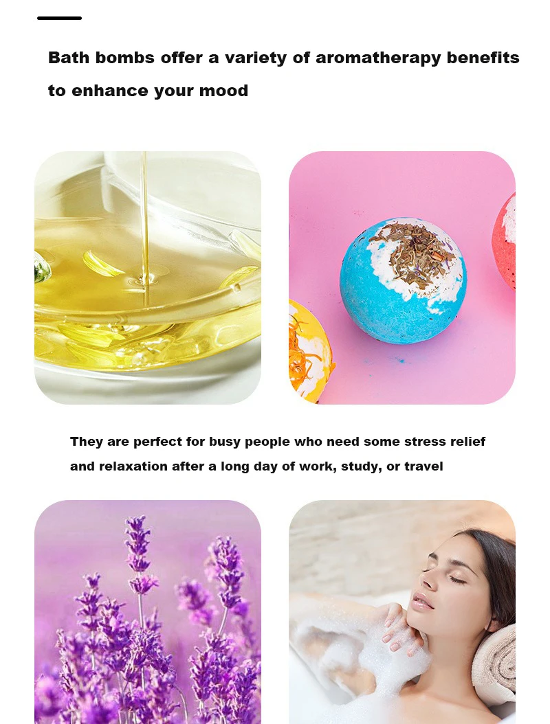 Nos bombes de bain sont adaptées à tous les types de peau et ne provoquent aucune irritation ou réaction allergique. Elles sont parfaites pour offrir en cadeau lors d’occasions spéciales telles qu’un anniversaire, le jour de Thanksgiving, Noël, le Nouvel An, la fête des mères, la fête des pères, etc.
