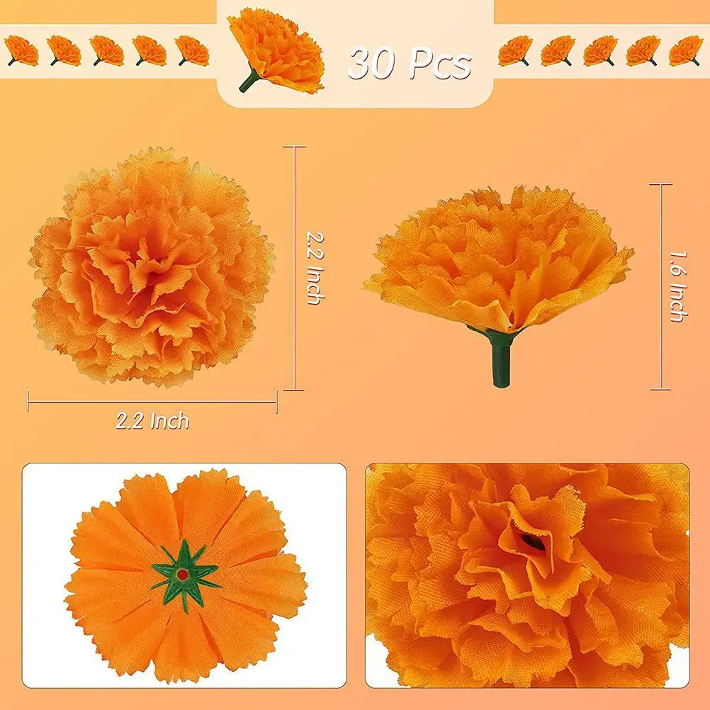 | Marigouls artificiels en soie, 30 pièces, fausses fleurs, pour décorer un Festival indien |