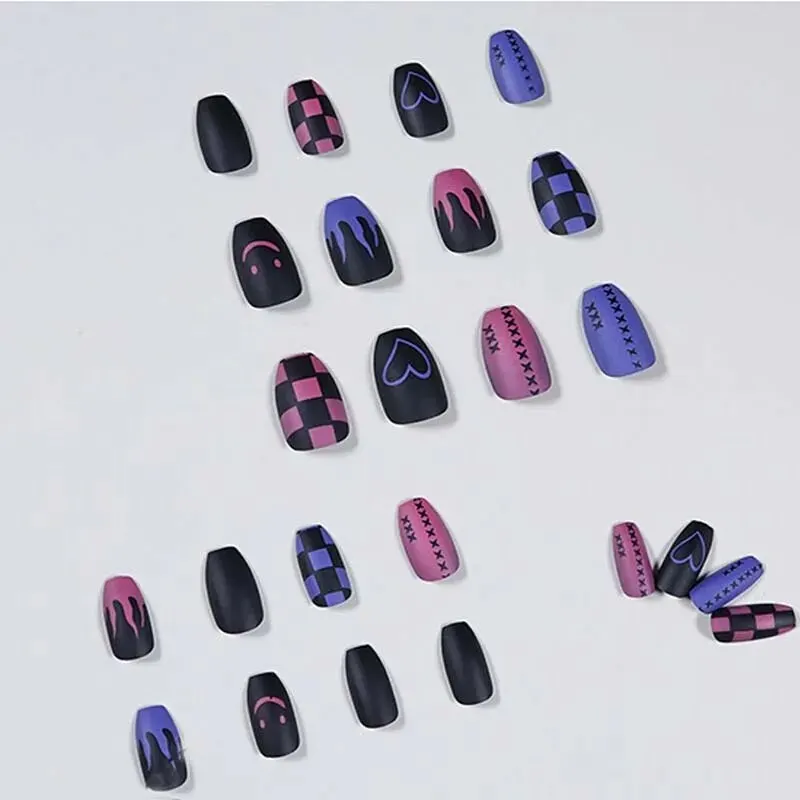Le kit de fausse flamme acrylique pour manucure comprend 24 pièces de faux ongles aux designs noirs, violets et rouges. Ces ongles sont parfaits pour ajouter une touche de style à votre look. Ils sont fabriqués en résine écologique ABS, garantissant ainsi leur durabilité et leur résistance. Faciles à utiliser, ils offrent un rendu réaliste et sont adaptés à toutes les occasions. Suivez les étapes de pose pour obtenir des résultats parfaits.