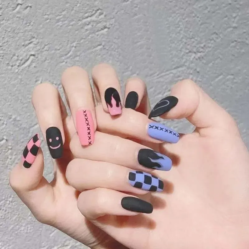 Nom du produitNoir Violet Rouge Flamme Faux Ongles