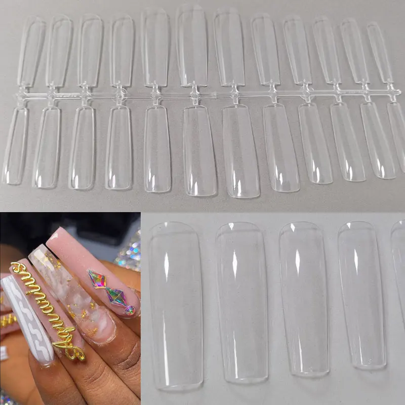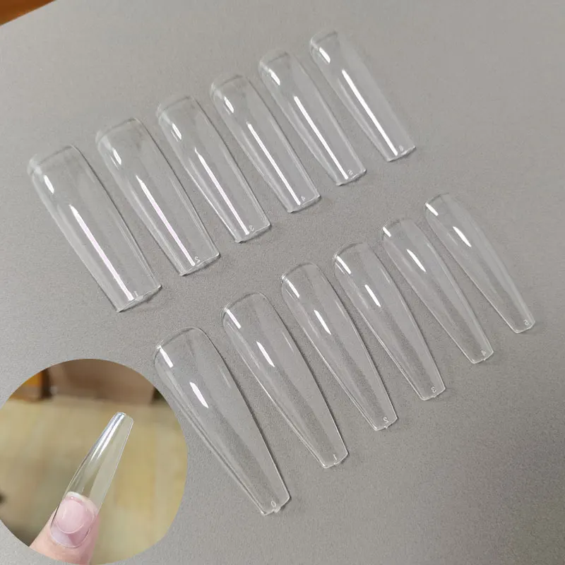 False Nail Art Tips French Transparent Coffin False Nails Tips Acrylic Nail Polish Manicure