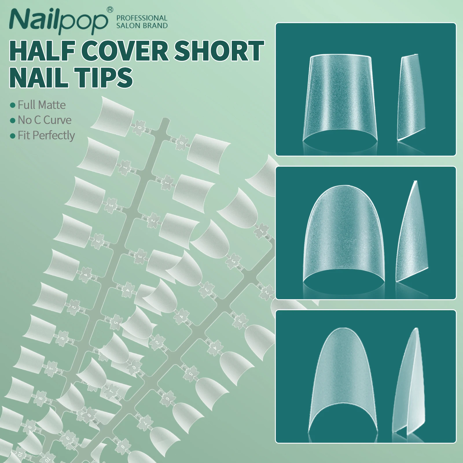 Nom du produit : Moitié courte couverture faux ongles 120pcs Full Matte 12 tailles No C Curve Faux ongles pour extension d’ongles Art Home DIY Nail Salon
