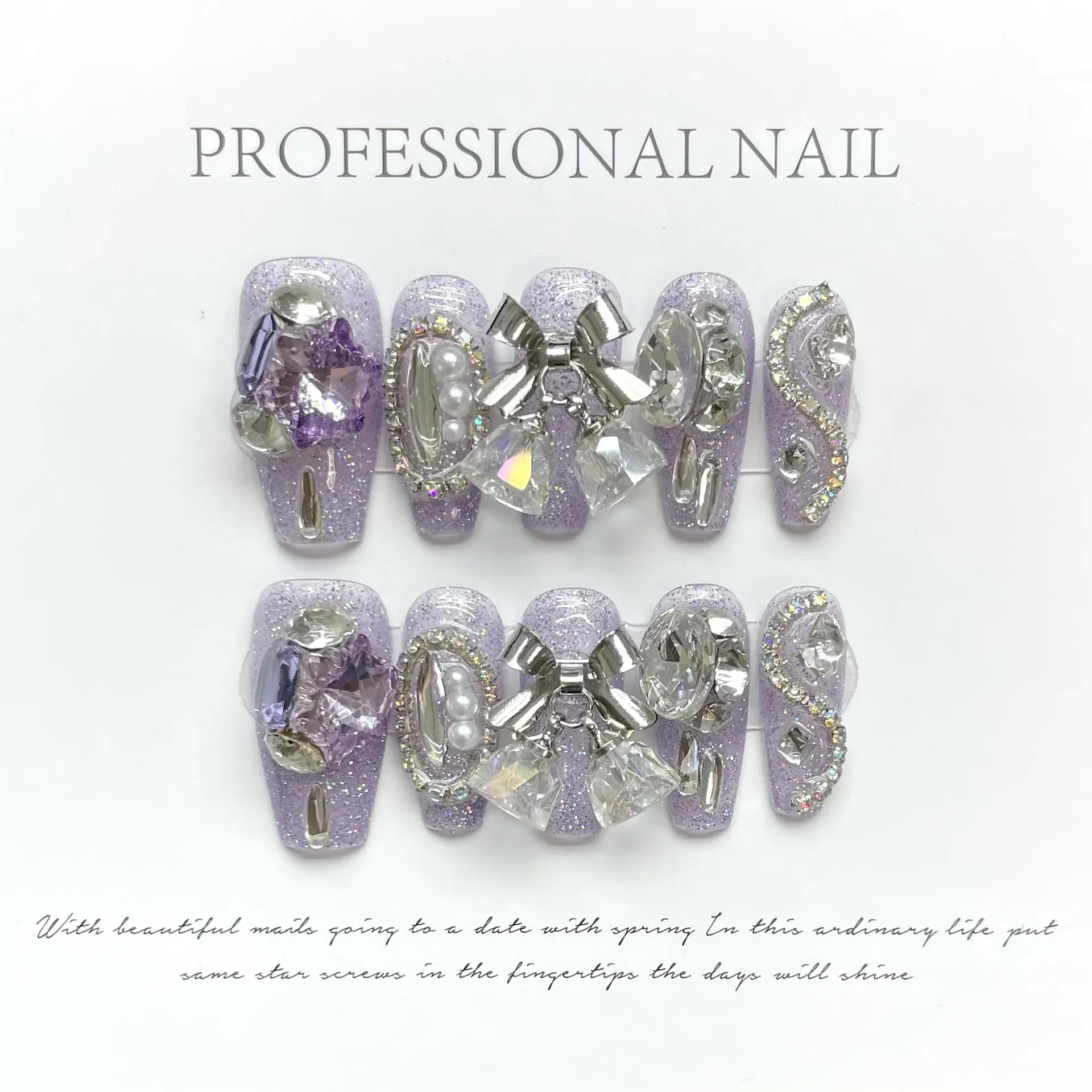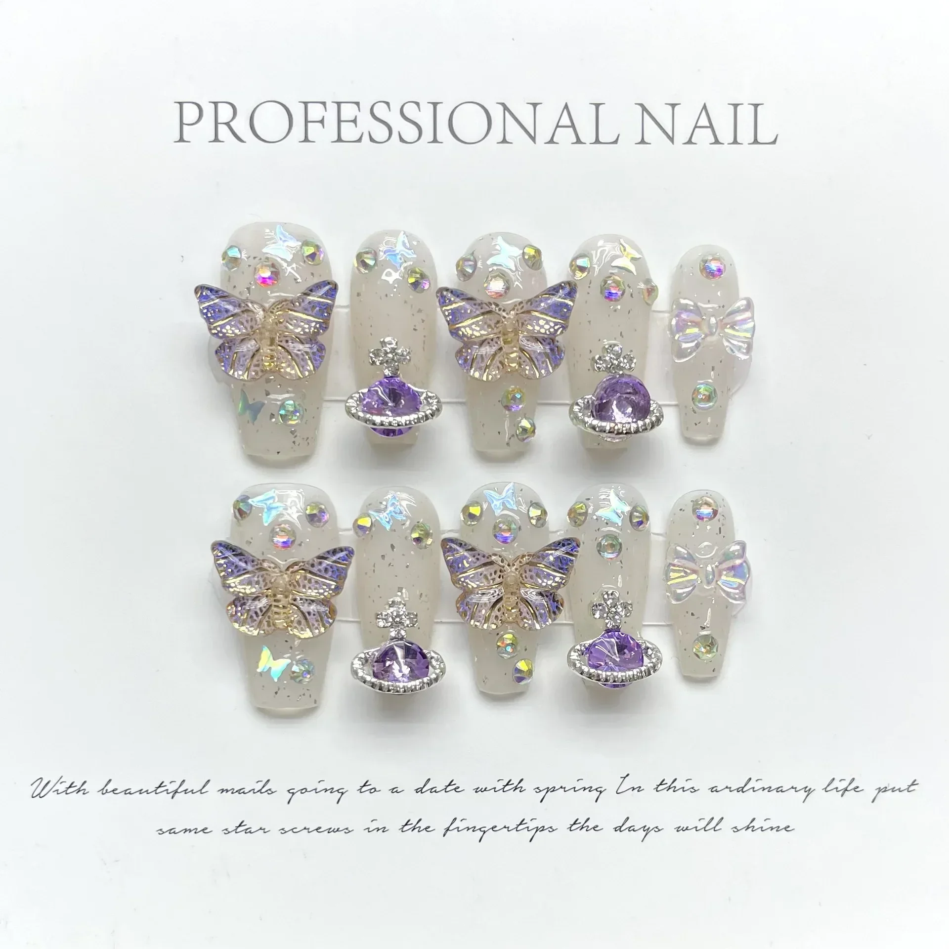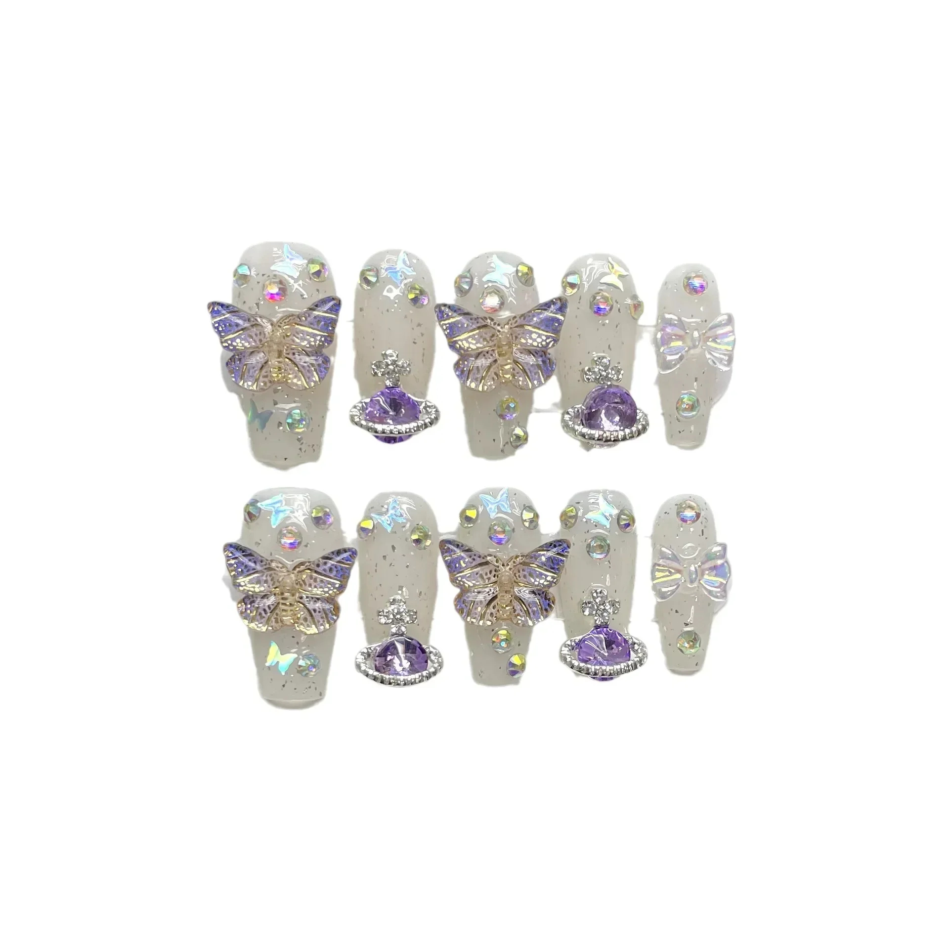 10 pièces violet fait à la main presse sur les ongles Aurora strass papillon portable faux ongles ballerine décoration couverture complète ongles conseils