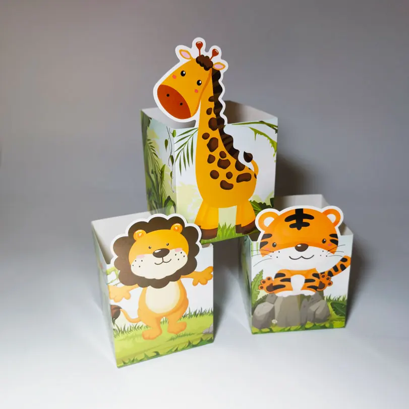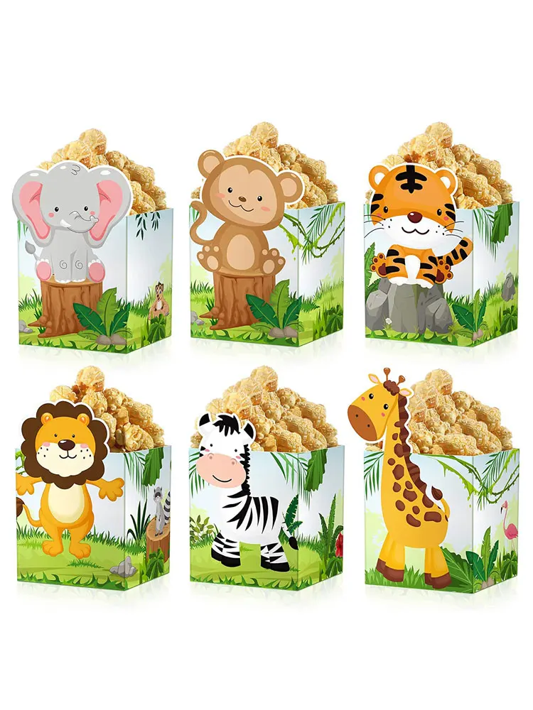 | Boîtes à pop-corn animaux de la jungle | Boîtes en papier pour animaux du zoo |