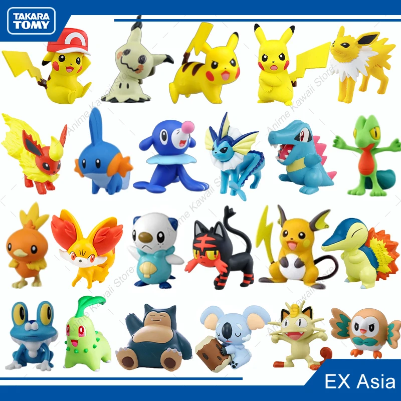 TOMY-Figurines Pokémon en PVC pour Enfants, Pikachu, Vegeon, Vaporeon, Flareon, Sicilax, Raichu, Oshawott, Cyndaquil, Jouets d’Action Originaux
