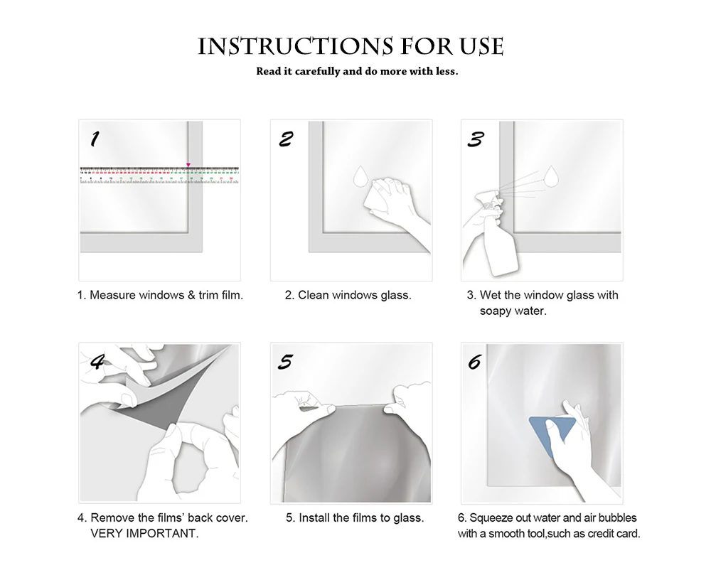 Ce film pour fenêtre est auto-adhésif et ne nécessite pas l’utilisation de colle. Il suffit de s’assurer que la surface de la fenêtre est propre et sans défauts. Il est recommandé de bien nettoyer la surface et d’utiliser un mélange d’eau et de savon pour faciliter l’adhésion du film à la fenêtre.