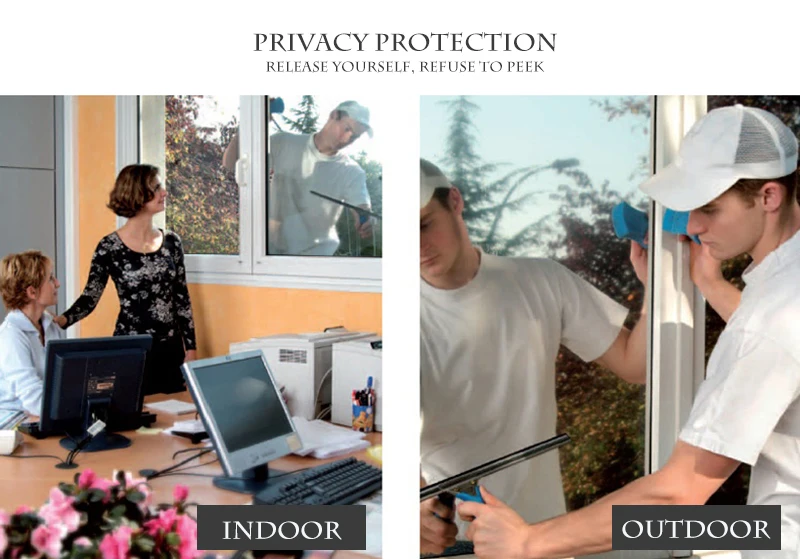Ce film de verre miroir à sens unique offre une grande intimité pendant la journée, avec un effet miroir à l’extérieur qui empêche les regards indiscrets. Cependant, à mesure que la lumière extérieure diminue, l’effet miroir disparaît progressivement, permettant aux personnes extérieures de voir à l’intérieur. Il est recommandé de tirer les rideaux la nuit pour préserver votre intimité.