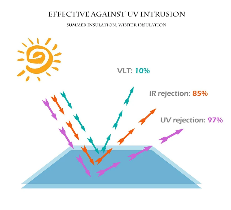 Le film de verre a une épaisseur de 6 mil et offre un excellent effet d’isolation thermique. Il est également doté d’une couche anti-rayures sur sa surface, ce qui le rend résistant à l’usure et facile à nettoyer. Sa durabilité garantit une utilisation à long terme.