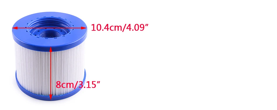 La taille de la cartouche filtrante est d’environ 10,4×8 cm (4.09×3.15 pouces) (lxh).