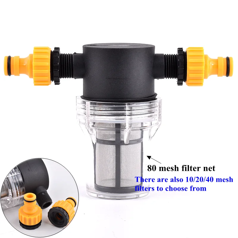 Le filtre d’arrosage de jardin de 1/2 et 3/4 pouces est un outil de filtration essentiel pour votre système d’irrigation agricole ou pour le lavage de votre voiture avec une pompe à eau. Fabriqué en matériau PC plus épais, il est durable et résistant. Le filtre est doté d’un connecteur rapide en plastique pour faciliter le raccordement. Il est compatible avec les tuyaux d’eau de 1/2 pouces (diamètre intérieur supérieur à 12mm et diamètre extérieur inférieur à 18mm) et les tuyaux d’eau de 3/4 pouces (diamètre intérieur supérieur à 18mm et diamètre extérieur inférieur à 25.5mm).