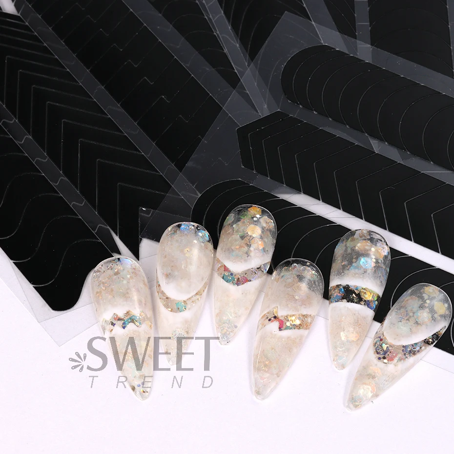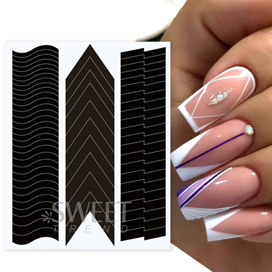 | Nouveautés 2023 Designs | Articles: French Strip Line Nail Form Fringe Tip Guide Trait: avec design brillant en poudre scintillante Motif: Oblique français/tourbillon/bande/croissant sourire/ligne droite Type: Décalcomanies de modèle d’autocollant d’ongle adhésif 3D Conception d’ongles de modèle de charme de bricolage Emballage: 6 pièces/ensemble 3D autocollants pour ongles | Autocollants français à paillettes réfléchissantes Or/Argent | ![]() |