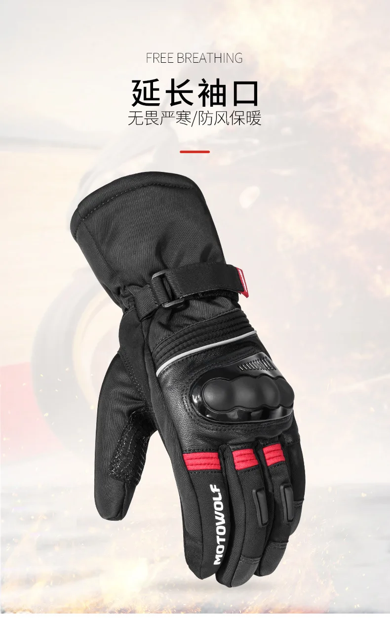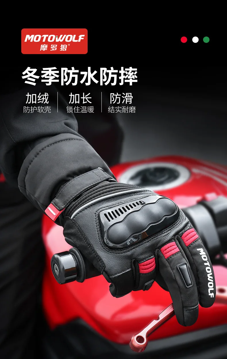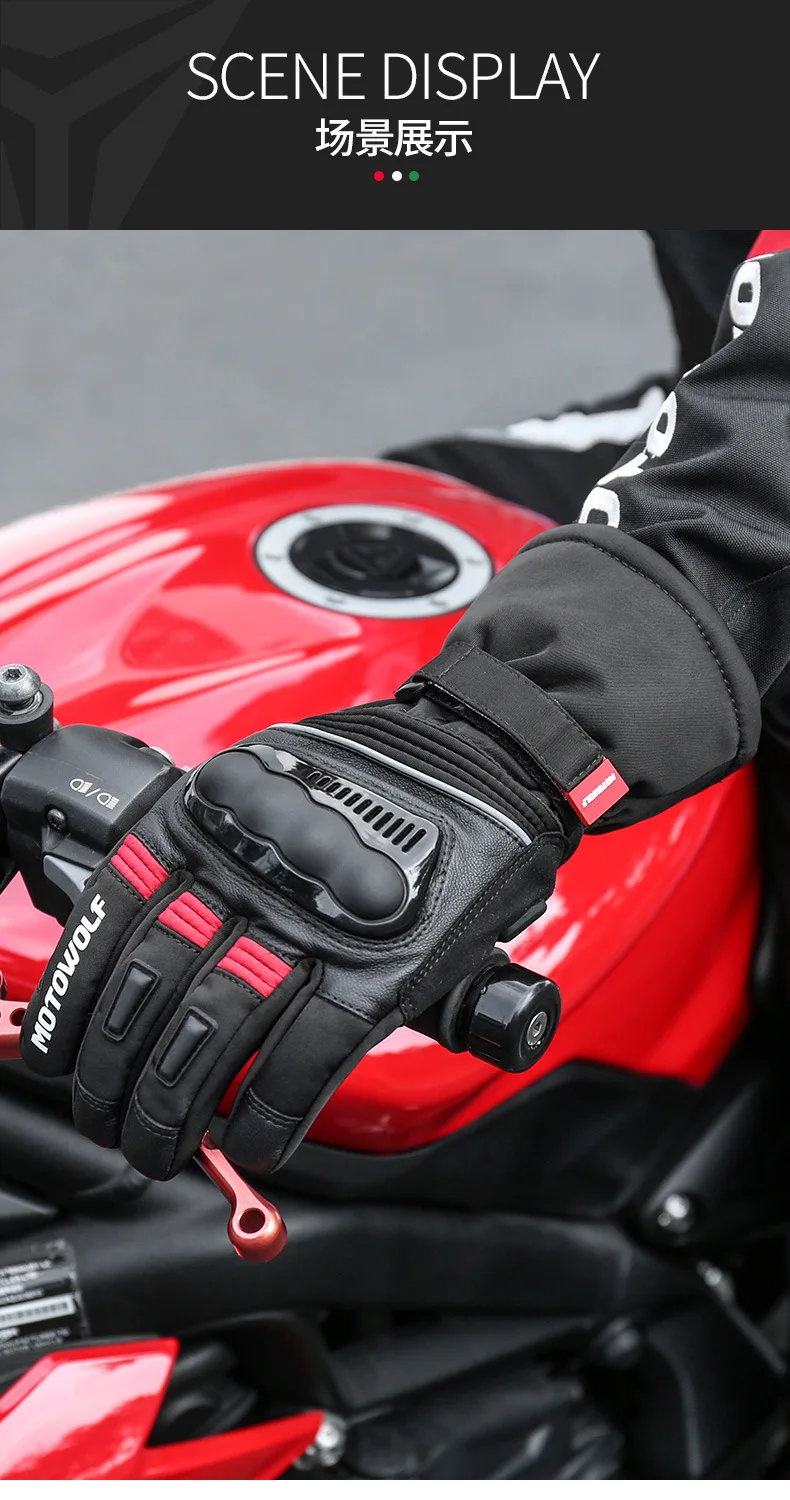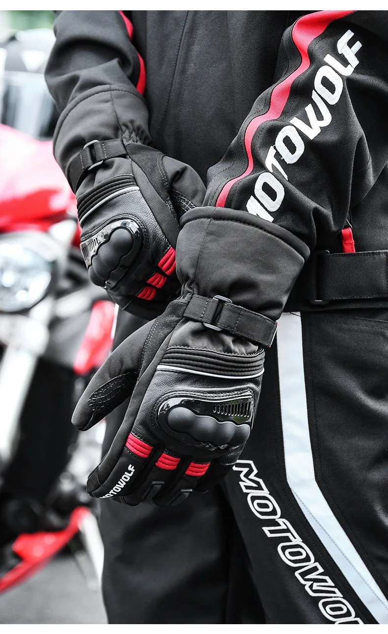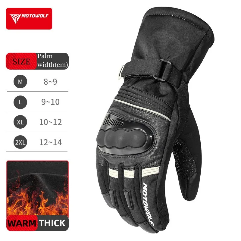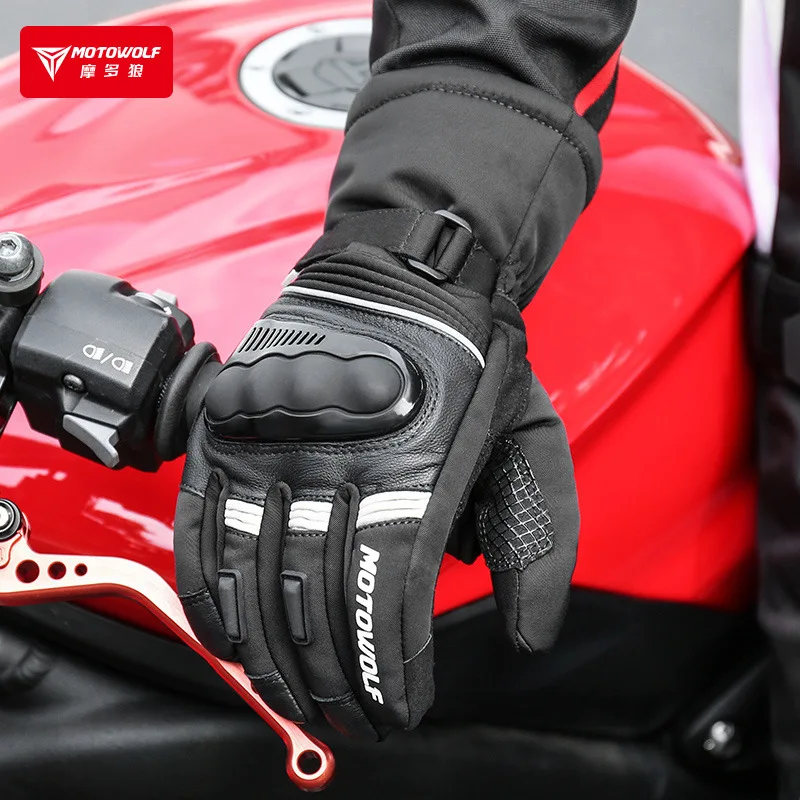 Motowolf-Gants de Motocross Thermiques Imperméables pour Homme, Gants de Motard, Coupe-Vent, Cuir, Équipement de Moto, Hiver