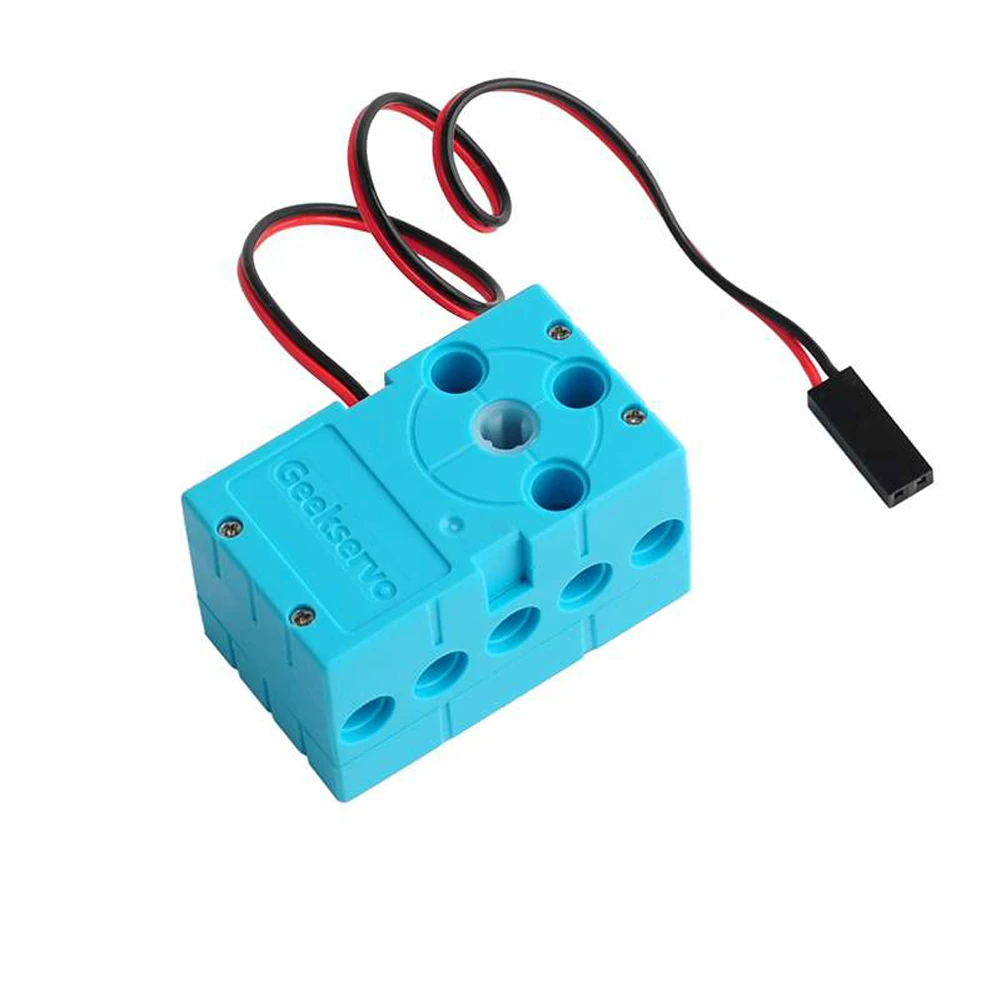 Le Geekservo-Moteur à Rotation Continue est un moteur à couple élevé résistant à 360 degrés avec une double sortie. Il est compatible avec Legoeds et est disponible en différentes quantités (1 Pc, 2 Pcs, 4 Pcs). Ce moteur fonctionne avec une tension de 4.8-6V et a une torsion de 0.7kg. Il a un angle d’utilisation de 360 degrés et une vitesse de 90/min (6V). Le fil mesure 25CM et le type de terminal est Terminal DuPont. Le rapport de réduction de vitesse est de 1:300.