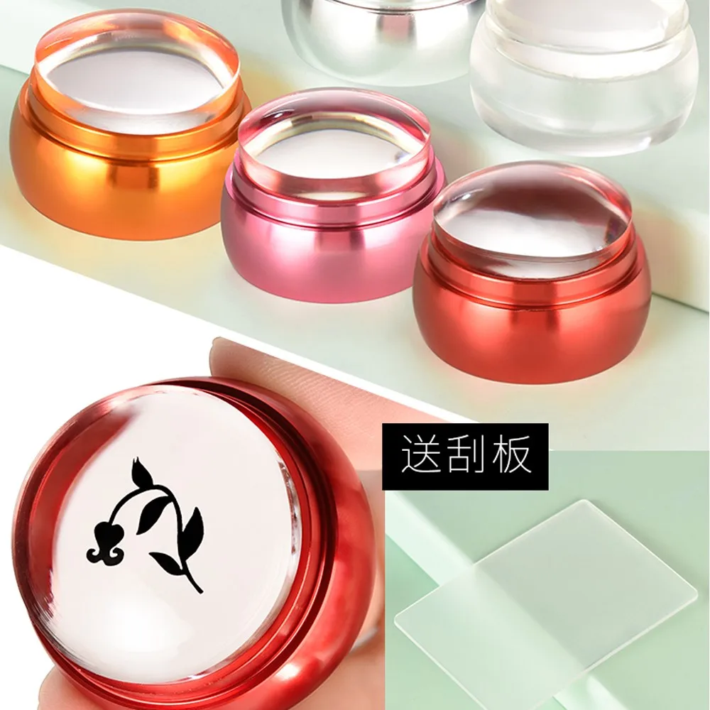 Modèles de grattoirs à ongles 4CM tête en silicone gelée transparente grattoir à ongles avec capuchon estampage vernis impression bricolage outil de manucure