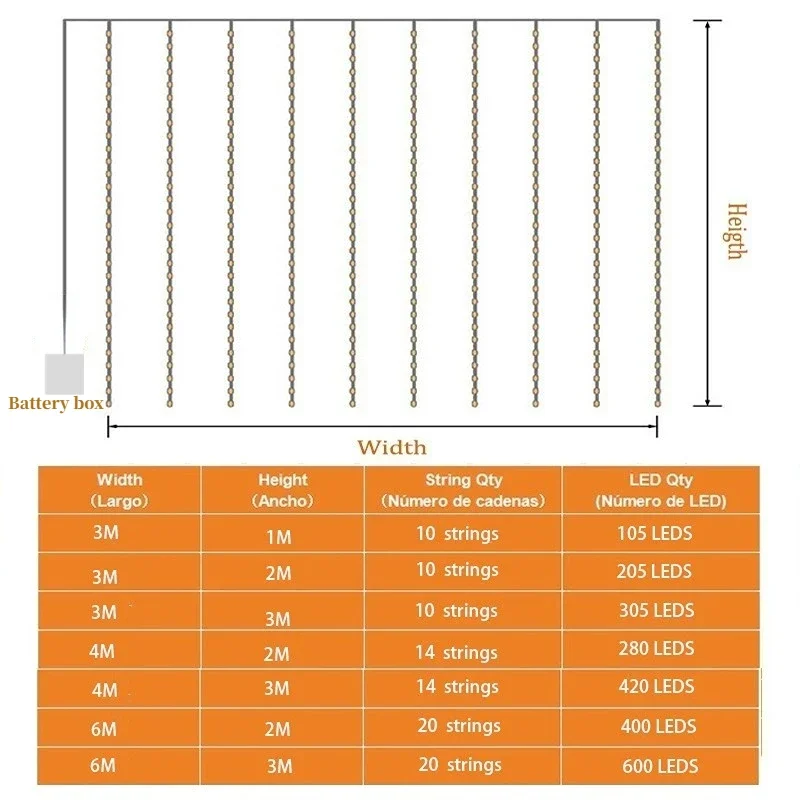 1x3M(W) x 1/2/3M(H) 100/200/300 rideau lumineux LED – SELON L’OPTION SÉLECTIONNÉE SUR LE DESSUS.