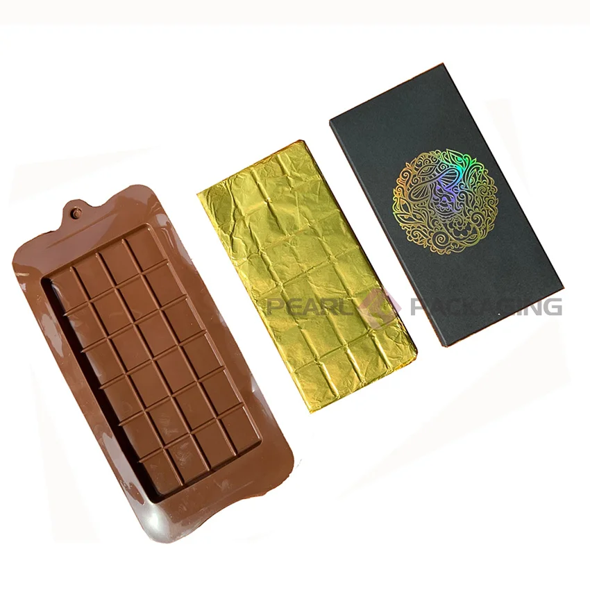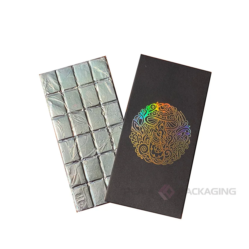 La Boîte à Chocolat Champignon Holographique Dorée avec Moule Boîte Pliante à Chocolat Polkadot est un emballage alimentaire utilisé principalement pour l’emballage de barres de chocolat. Fabriquée en stock de cartes noires, la boîte mesure 8x1x16 cm (3.15×0.39×6.3 pouces) et l’emballage mesure 20×20 cm (7.87×7.87 pouces).