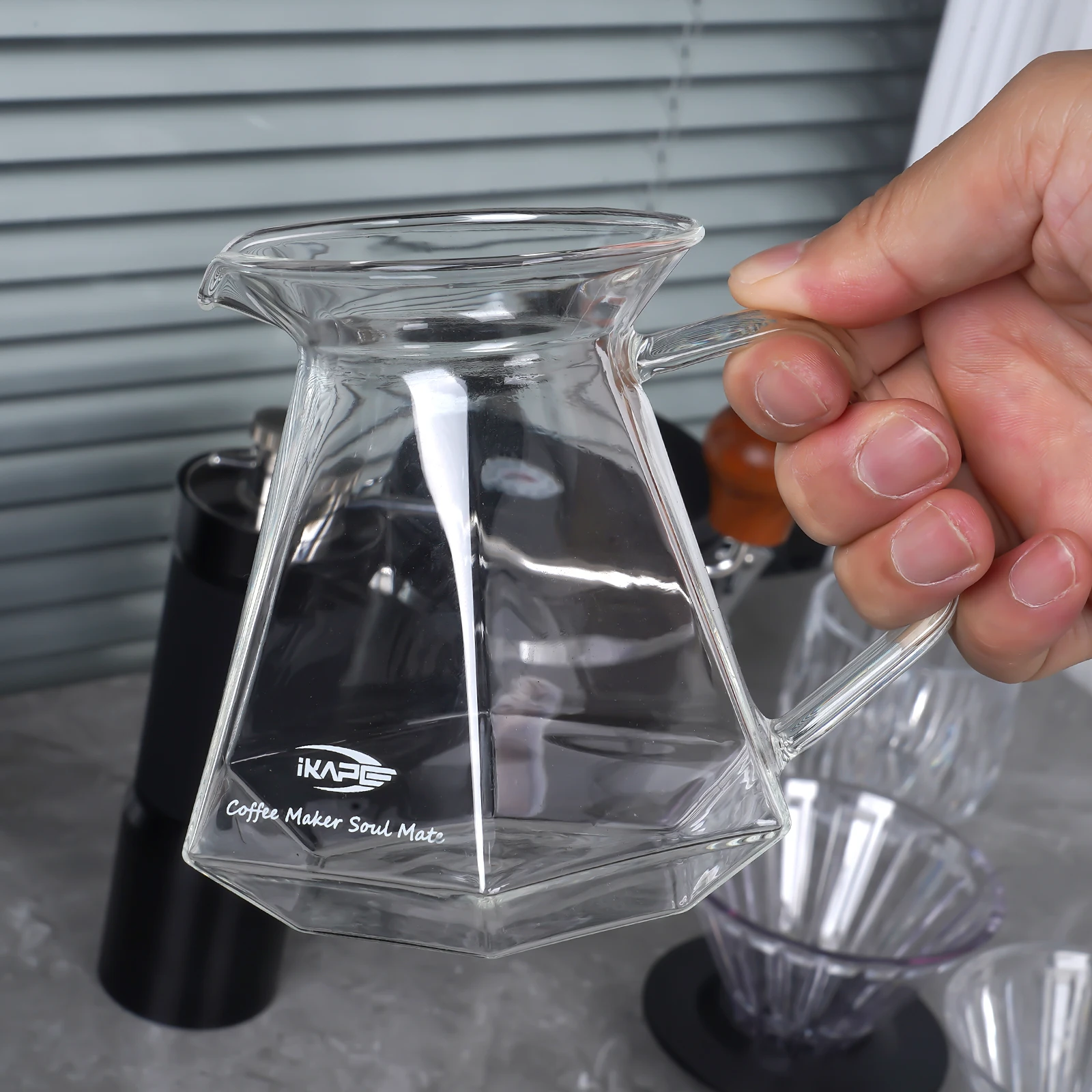 Le serveur à café en verre V60 d’IKAPE est fabriqué en verre borosilicate de haute qualité, un matériau de premier