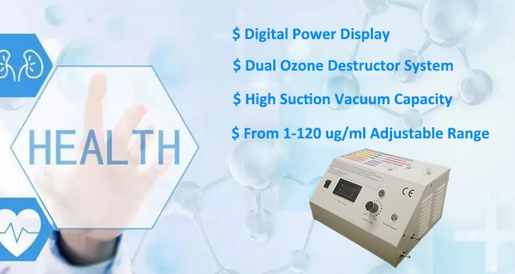 Le dernier générateur d’ozone de conception de brevet pour l’usage médical, cette machine de thérapie d’ozone est matérielle résistante de l’ozone de l’utilisation 100%, conception plus professionnelle avec pompe à vide pour le traitement clinique et hospitalier pour la thérapie de la peau et du sang avec une norme de concentration stricte et précise, celui-ci peut accomplir toutes sortes de traitement d’ozone dû à sa gamme de concentration (1-120ug/ml), Il peut également être disponible pour un usage personnel à la maison car il est très facile à comprendre et à utiliser.