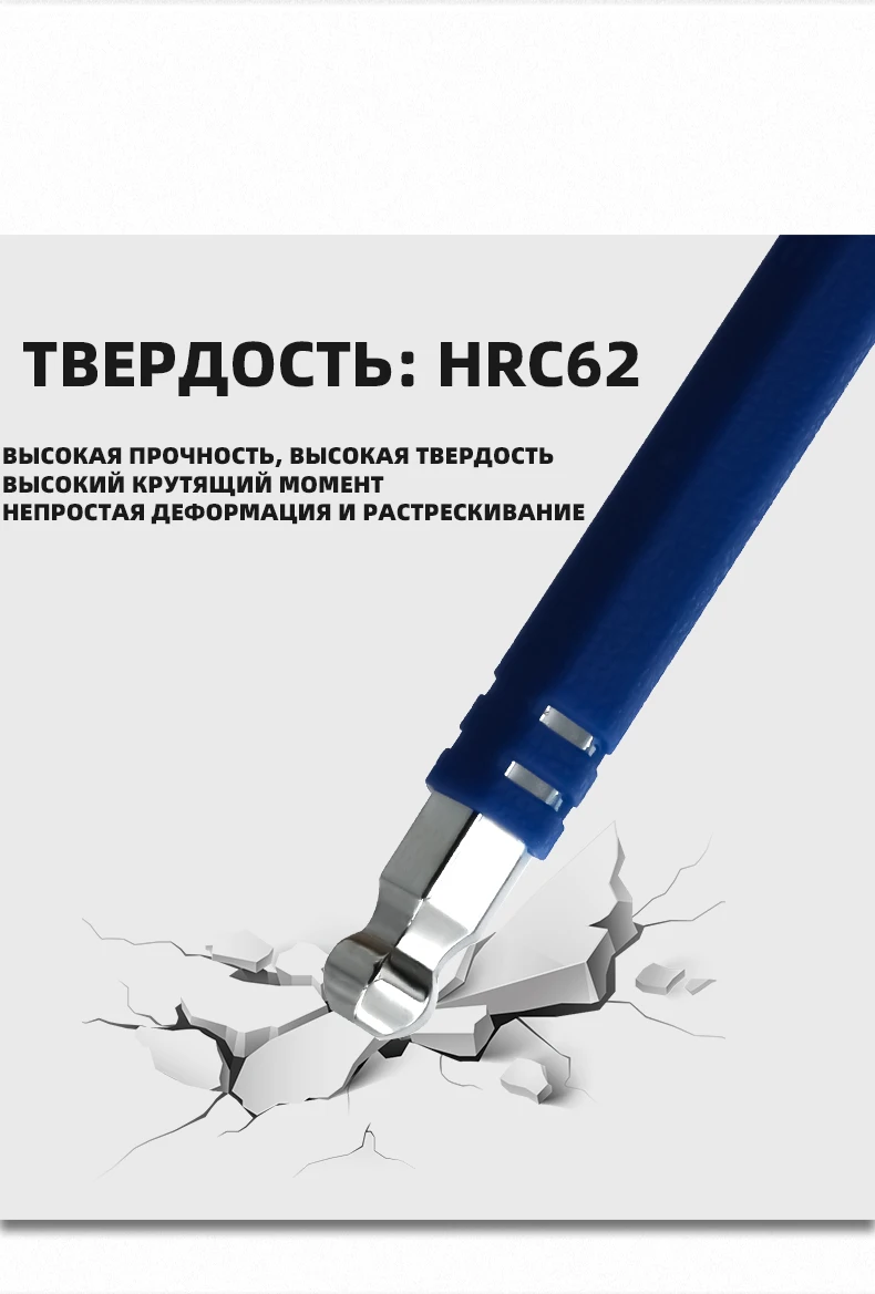 Le processus de pliage à angle droit de 90 degrés permet un positionnement précis et empêche les rebonds, ce qui facilite les tâches de serrage et de desserrage. De plus, la haute dureté jusqu’à HRC62 assure une résistance élevée, empêchant les déformations et les fissures.
