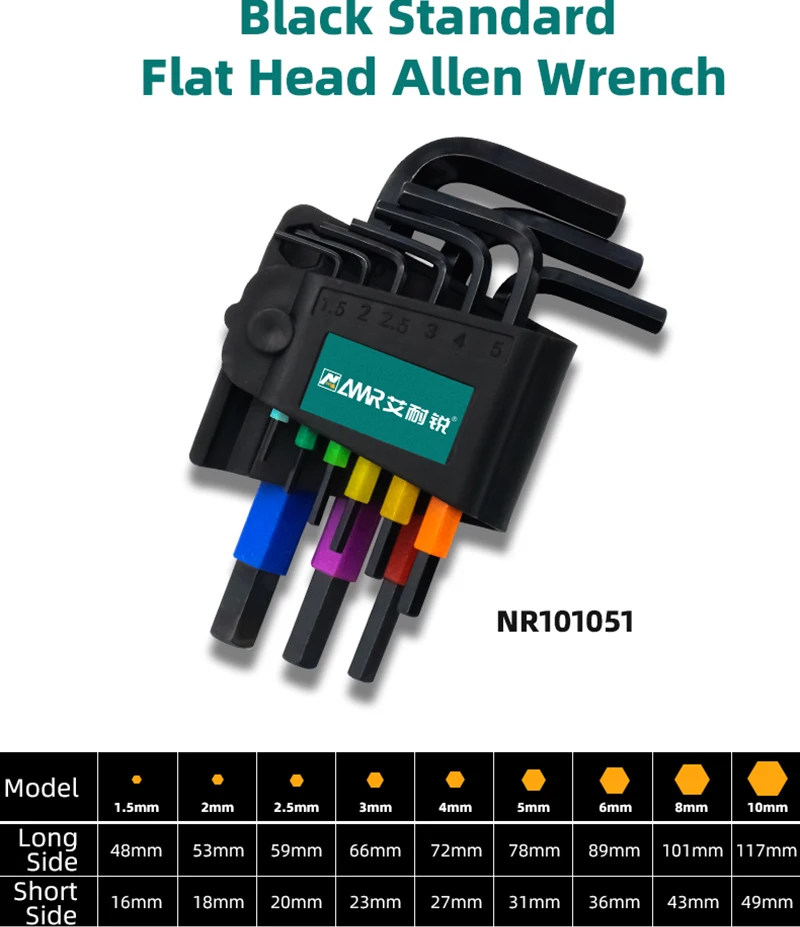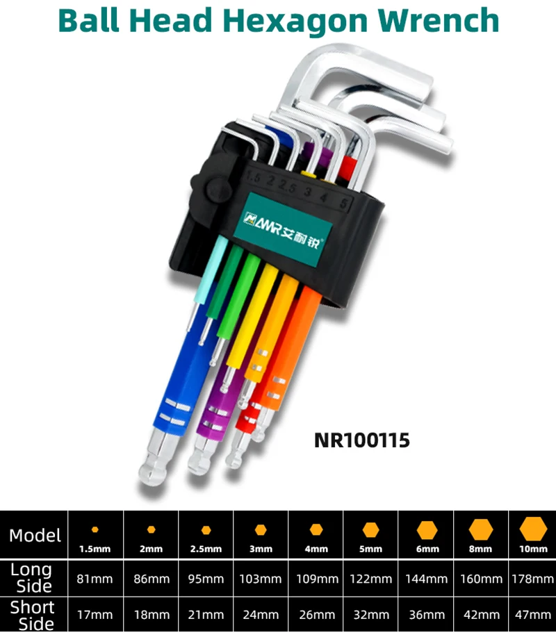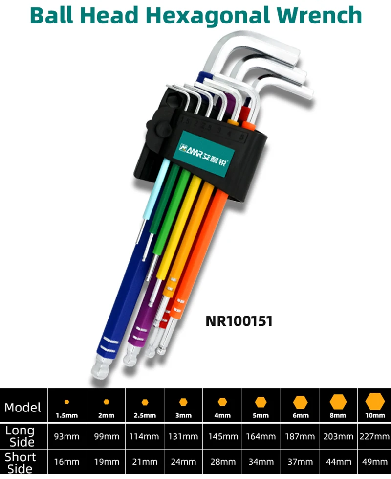 La différenciation multicolore des clés facilite leur identification rapide, tandis que la conception de la tête sphérique leur permet d’être utilisées dans des espaces restreints avec une grande flexibilité. Le traitement de précision empêche la rouille, garantissant une surface lisse et un fonctionnement sans heurts.