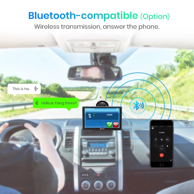 - > GPS n ° 1 + écran de capacité de 7 pouces + prise en charge du Bluetooth (en option), transmission sans fil, répondez au téléphone + prise en charge de la caméra arrière (en option) + FM, la voix et la musique de navigation seront directement envoyées au haut-parleur de la voiture + navigation 3D, pas besoin de s’inquiéter du viaduc complexe et de la traversée du labyrinthe
