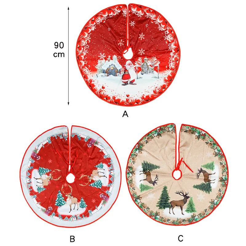 La taille de la jupe de sapin de Noël est indiquée dans l’image montrée, veuillez vous référer à celle-ci pour plus de détails.