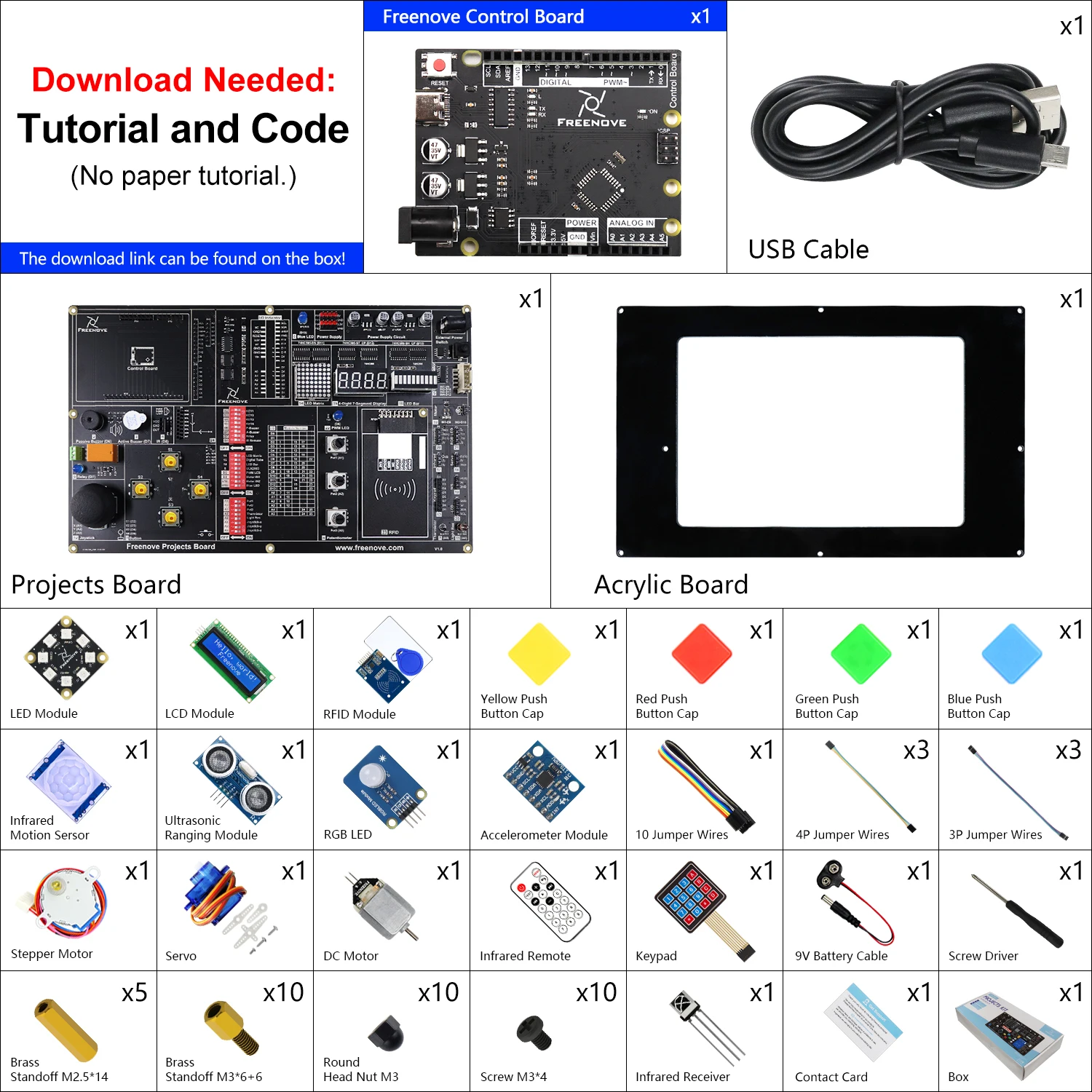 Les cartes compatibles avec ce kit sont la carte de contrôle Freenove et Arduino UNO, ainsi que d’autres cartes similaires.