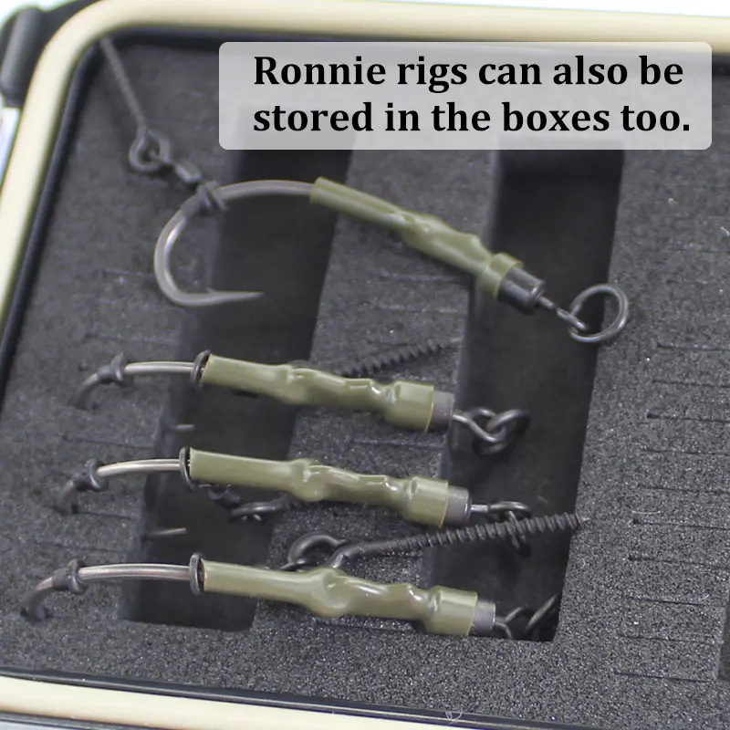 La boîte à outils pour équipement de pêche à la carpe est un accessoire essentiel pour les amateurs de pêche à la carpe. Elle est spécialement conçue pour les Ronnie Rigs et offre un stockage pratique pour les hameçons et autres accessoires.