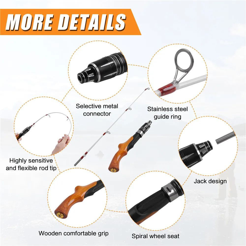Ce kit est idéal pour la pêche sur glace en hiver, et il convient à la pêche de différentes espèces de poissons, y compris les dorés, les morues, les truites et les merles.