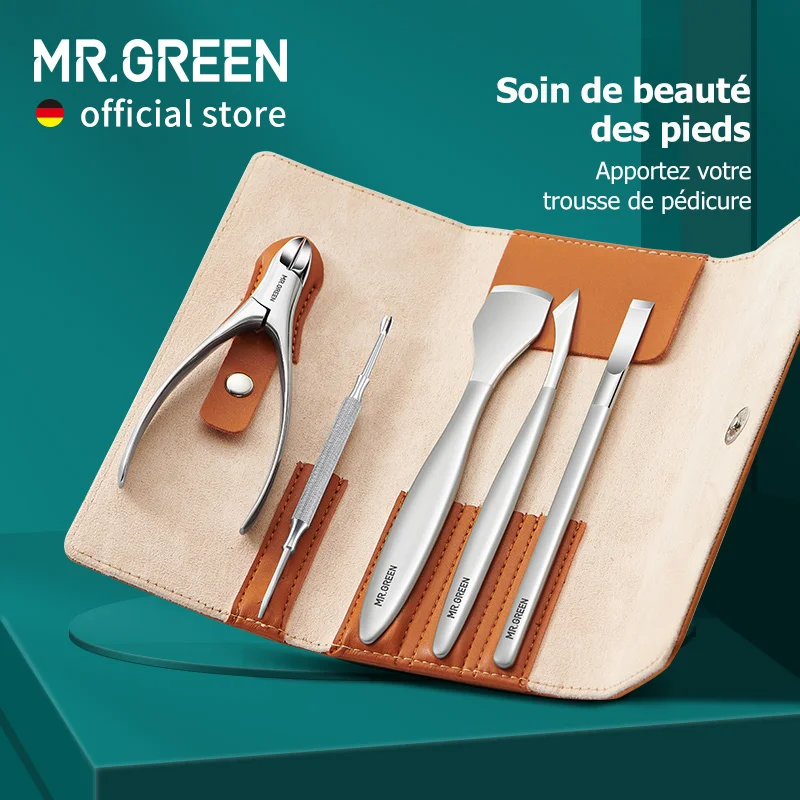 | Nom du produit | MR.GREEN – Ensemble de Couteaux de Pédicure Professionnels en Acier Inoxydable, Outils de Soins des Pieds Incarnés, Kit de Coupe-Ongles |