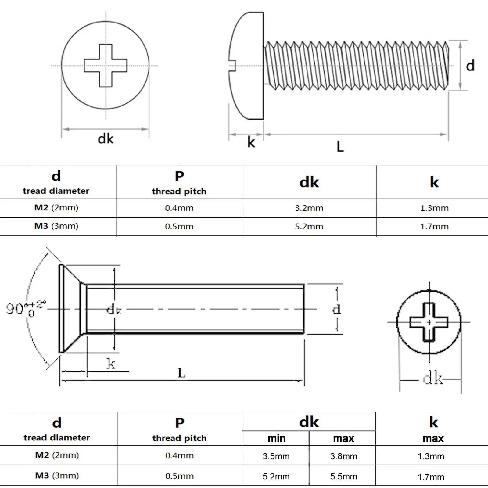 • Deux types de tête disponibles: tête ronde Phillips et tête fraisée Phillips