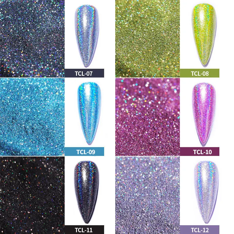 Le kit contient 12 pièces de poudre à ongles holographique.