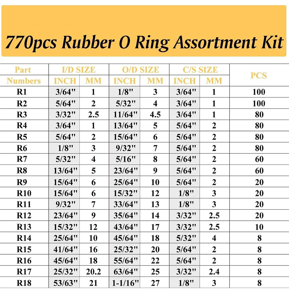• Excellent matériau : les joints toriques sont en caoutchouc nitrile de haute qualité, ce qui les rend résistants à l’eau, à l’huile, à la chaleur, étanches, résistants à la corrosion, à l’abrasion et antistatiques.