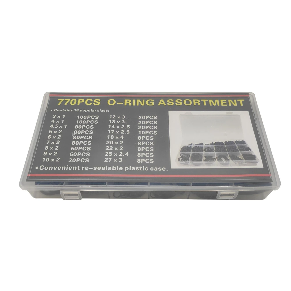 • Stockage et utilisation pratiques : les joints toriques sont rangés dans une boîte en plastique transparente, ce qui facilite leur sélection et leur utilisation.
