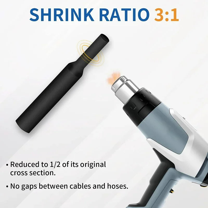 - Tube chauffant étanche à double paroi, le taux de rétrécissement élevé de 3:1 assure une isolation fiable des câbles. Le kit de tubes thermorétractables avec thermofusible « adhésif intérieur » est idéal pour sceller en toute sécurité les connexions de câbles et la protection contre la corrosion des composants, etc.