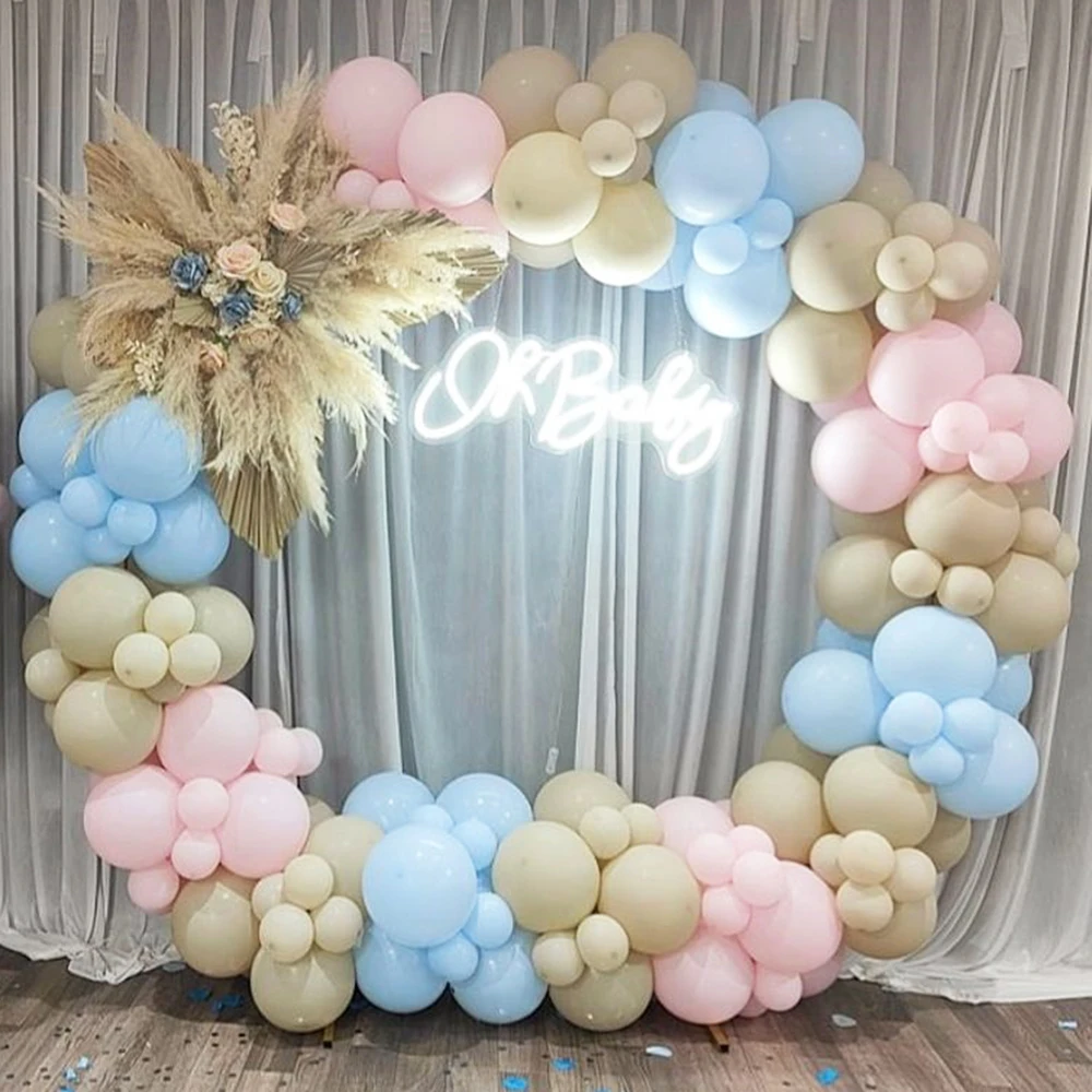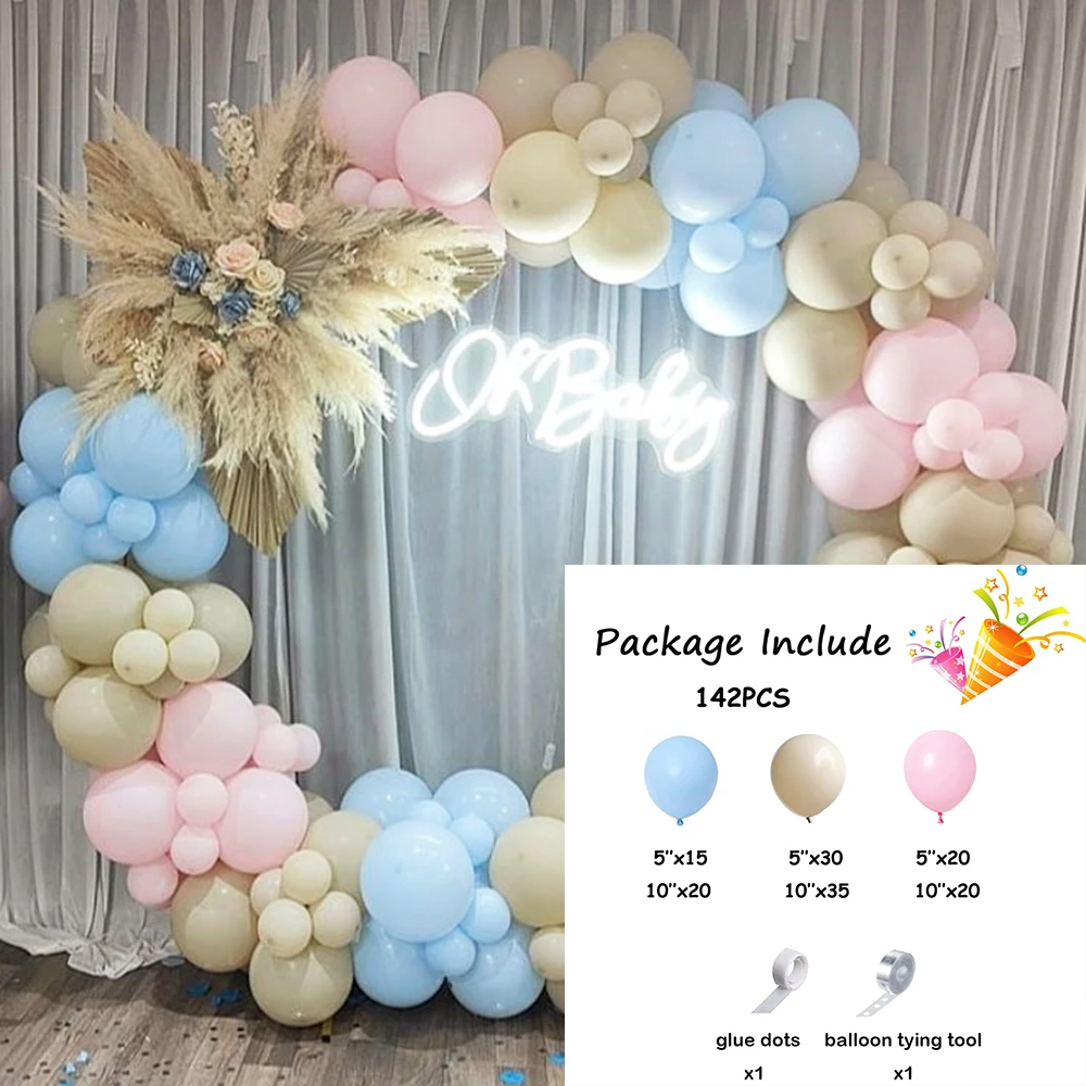 142pcs Boy Girl Balloons Garland Kit Pastel Blue Pink Balloon Arch Baby Shower Birthday Party Decor Sand White Ballon Decoration