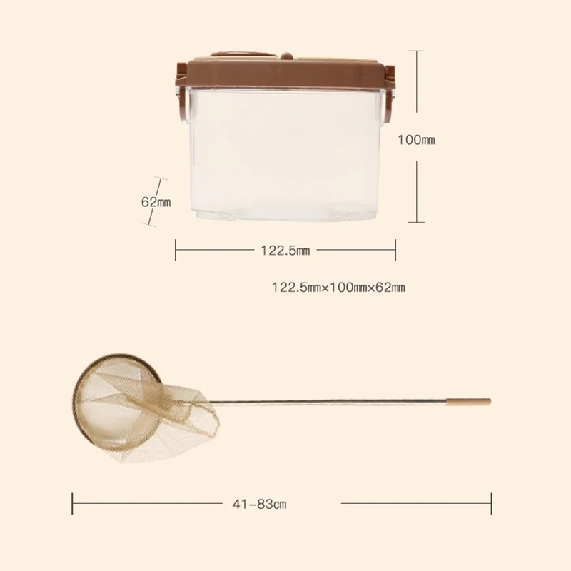 La boîte à insectes portable pour l’extérieur est un kit de filet de capture d’insectes qui comprend également une loupe légère. Il s’agit d’un jouet d’exploration de jardin parfait pour les enfants. Le diamètre du cadre du filet à insectes est d’environ 19 cm.