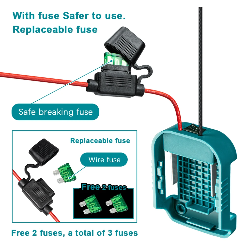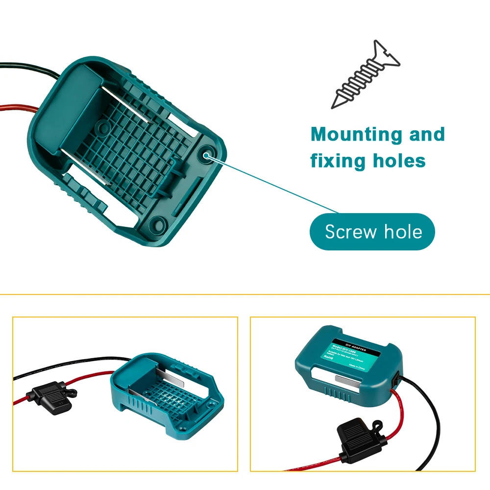 L’adaptateur de batterie externe pour batteries Makita 14V/18V est un produit pratique pour les bricoleurs. Il permet d’utiliser les batteries Makita pour alimenter d’autres appareils tels que vélo électrique, scooter, voiture de jouet, équipement de camping, etc. Le produit est conçu avec des interrupteurs et des fusibles pour assurer la sécurité lors de son utilisation. Sa coque est fabriquée en matériau ABS ignifuge et résistant aux chutes. Il peut être facilement fixé avec trois trous de fixation.