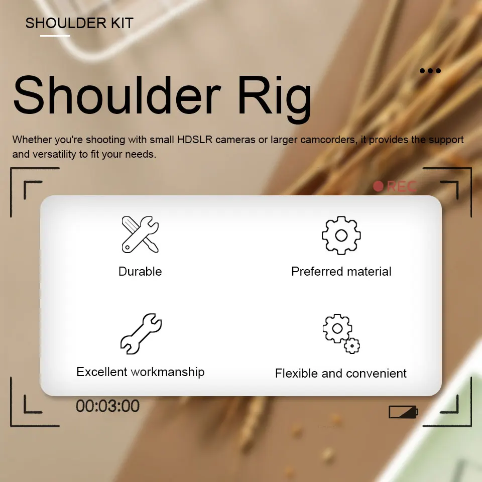 Support d’épaule Pro pour appareil photo reflex numérique/camescope DV