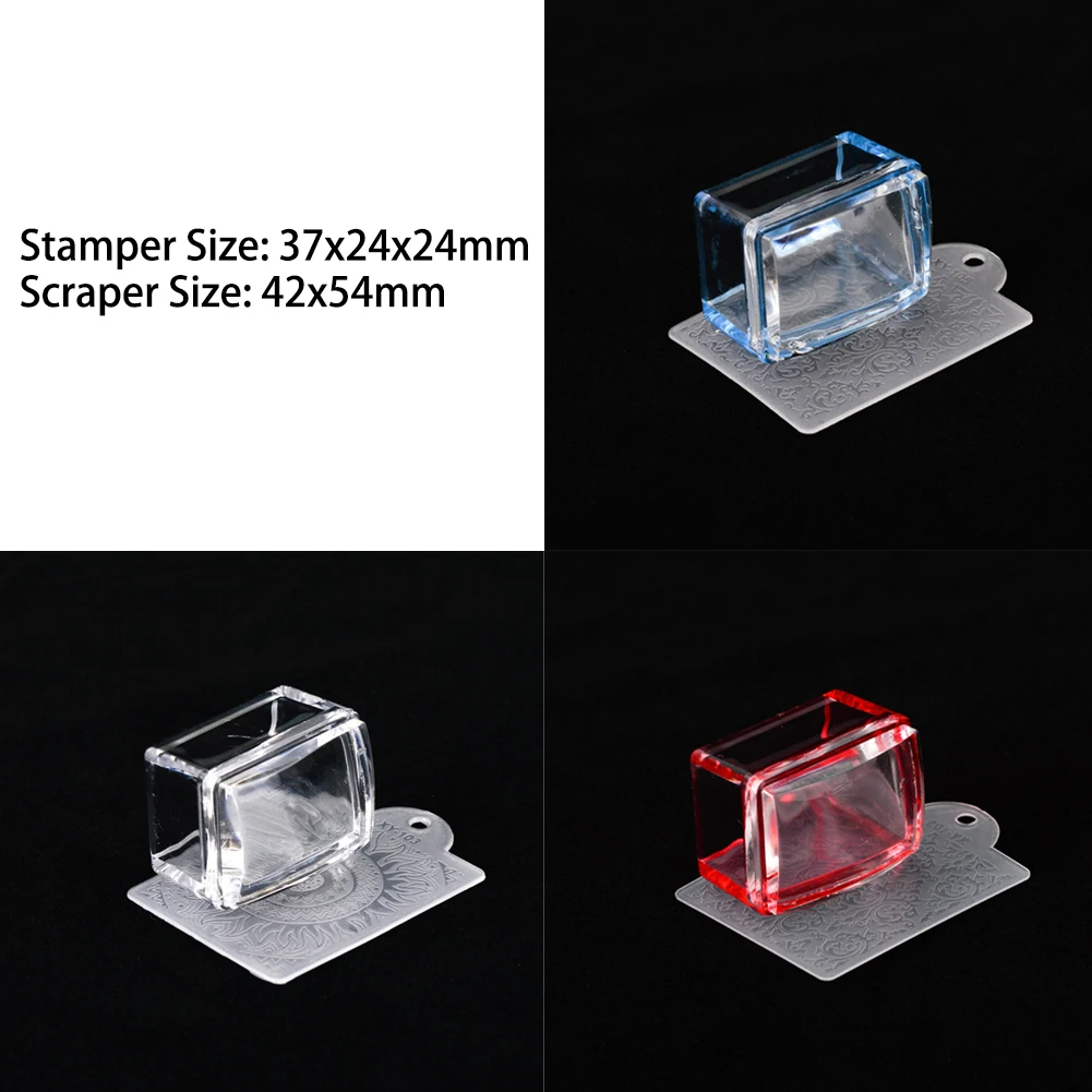 Le tampon mesure 37x24x24mm et le grattoir mesure 42x54mm.