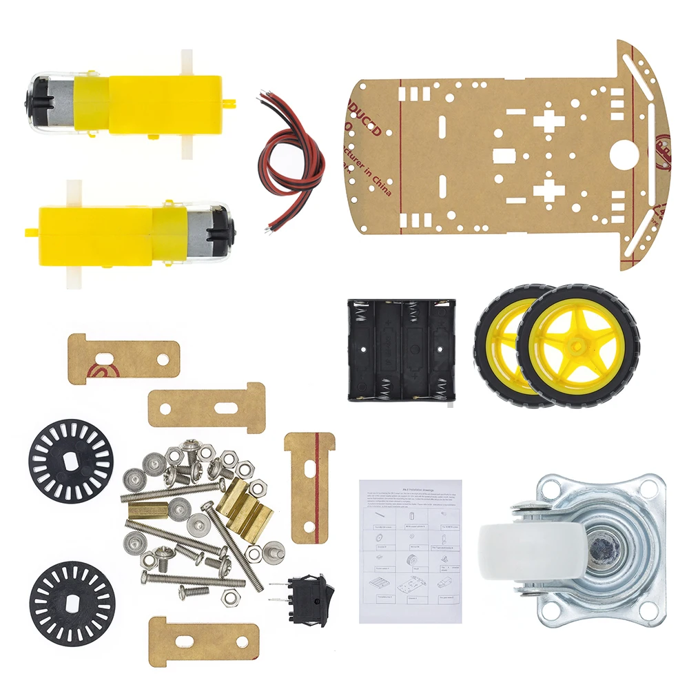 La liste complète des composants inclus dans le kit offre une grande variété d’options pour construire une voiture robotisée fonctionnelle. En outre, les dessins d’assemblage fournis facilitent le processus de construction.