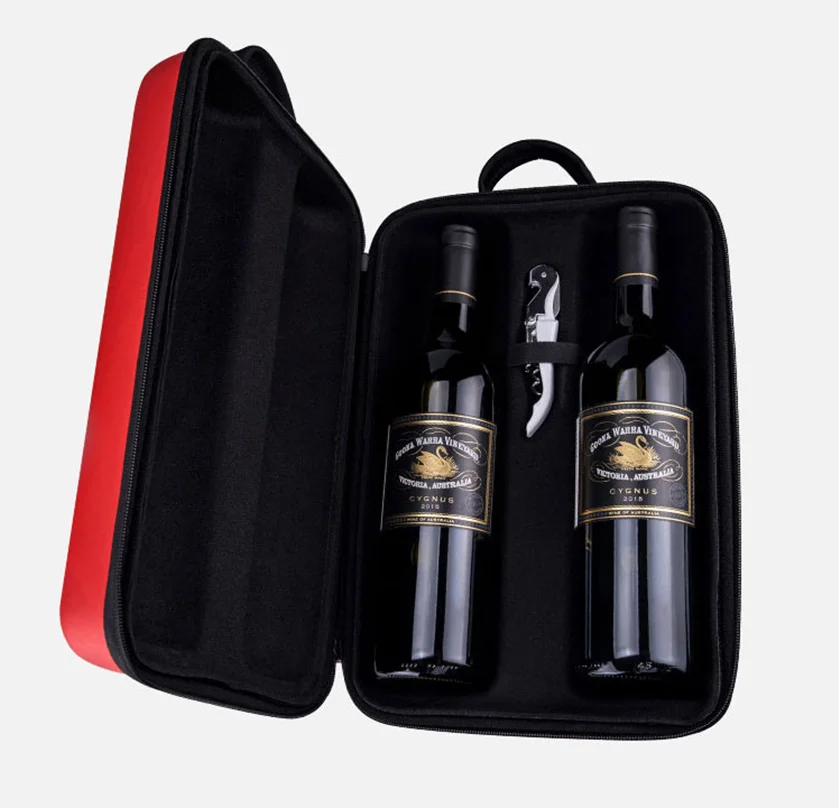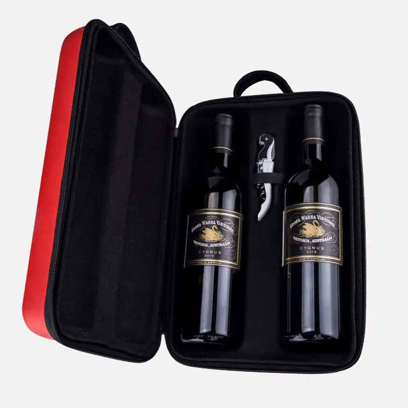 Kit de boîte d’emballage de stockage de cadeau de vin rouge en vrac en gros avec fermeture à glissière portable de voyage deux bouteilles porte-vin EVA ensemble d’étui rigide.